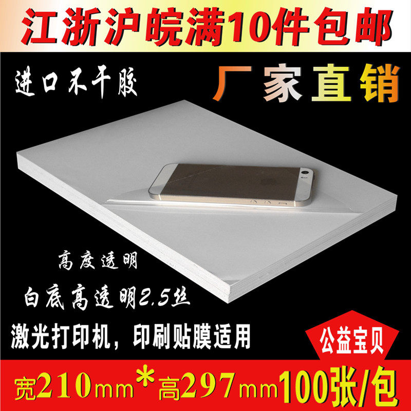 Laser inkjet A4 transparent film adhesive photocopy paper back adhesive paper coated waterproof label Sticker Foot 100 sheets