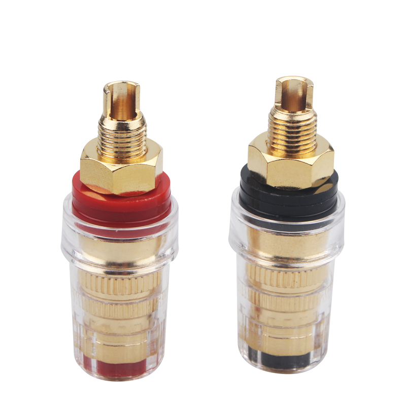 High-grade pure copper gold-plated with transparent crystal plastic speaker amplifier banana socket short tail speaker terminal