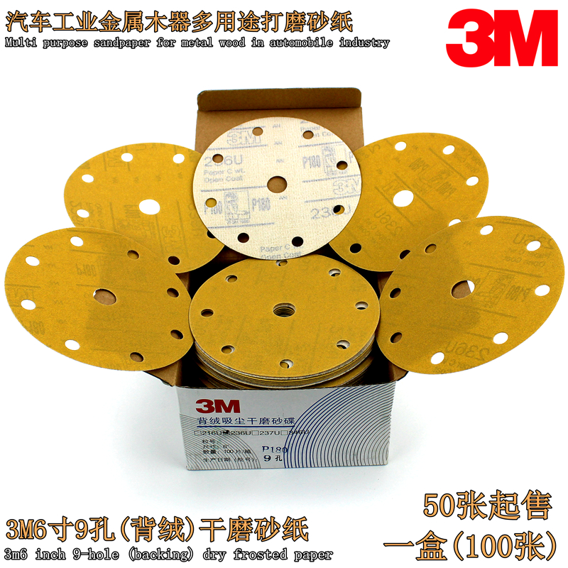 3M dry grinding sandpaper 6 inches 9 holes grinding sandpaper 236U round flocking planting car hardware grinding machine sand skin