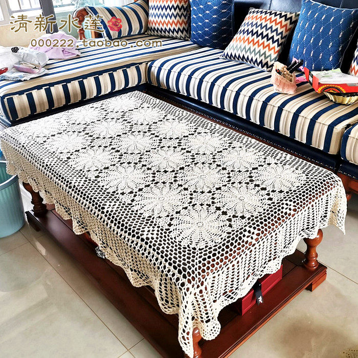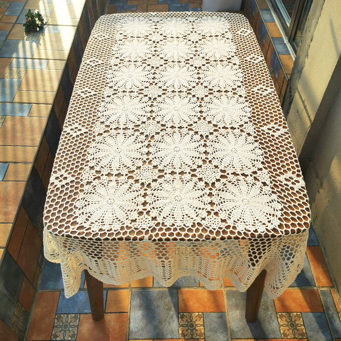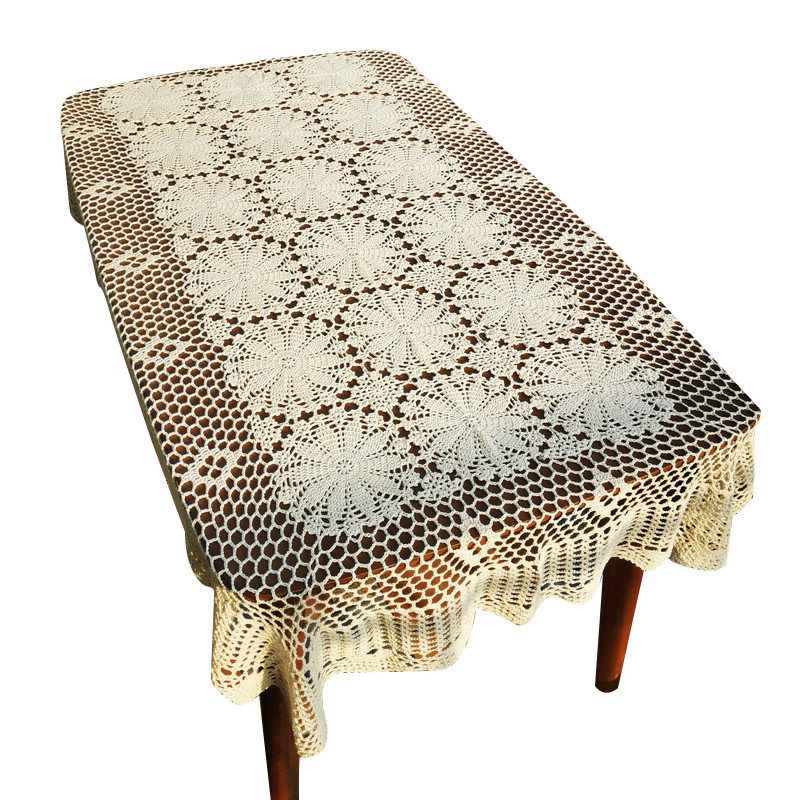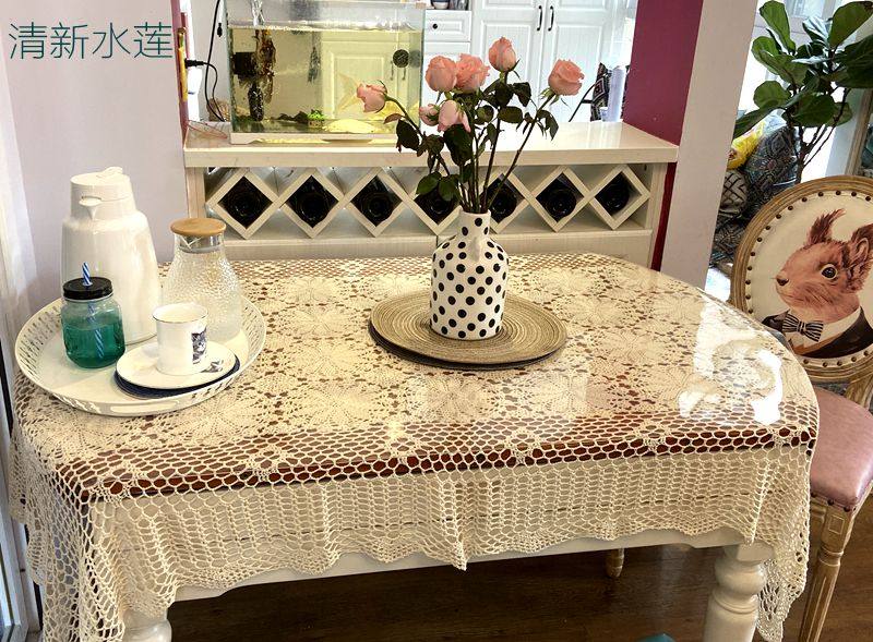 Fresh water lotus foreign trade Chinese style American-style rural retro hollowed-out manual hook flower table cloth table cloth rectangle