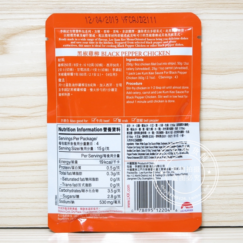 Hong Kong-Macao Buy-to-Hong Kong Edition Li Jinkee Black Pepper Chicken Willow Sauce Cantonese small vegetable series convenient to cook the sauce pack 60g