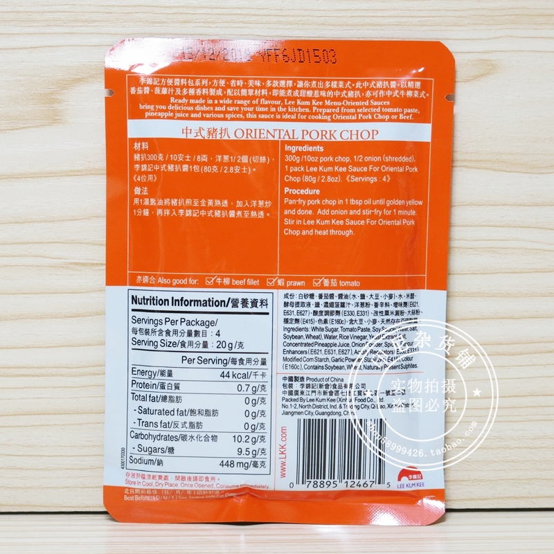 Hong Kong-Macao Buy-port Edition Li Jinkee Chinese Pork Pickpocketing Guangdong Little Vegetable Series Convenient Cooking Sauce Pack 80g