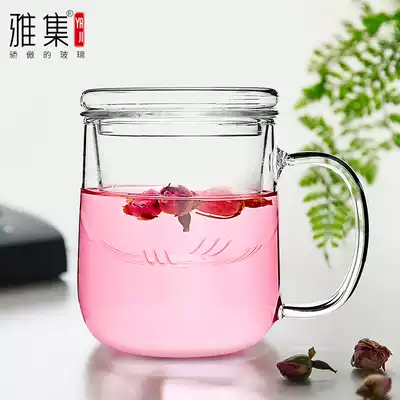 Yaji tea set Glass handle big belly water cup Female summer home office water cup with lid heat-resistant glass tea cup