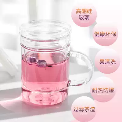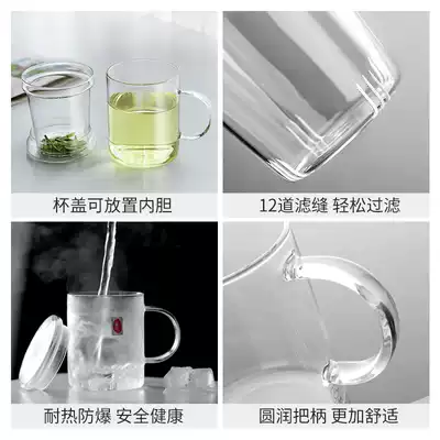 Yaji exclusive cup Glass with handle and lid Flower tea cup Transparent filter water cup Office tea green tea water cup