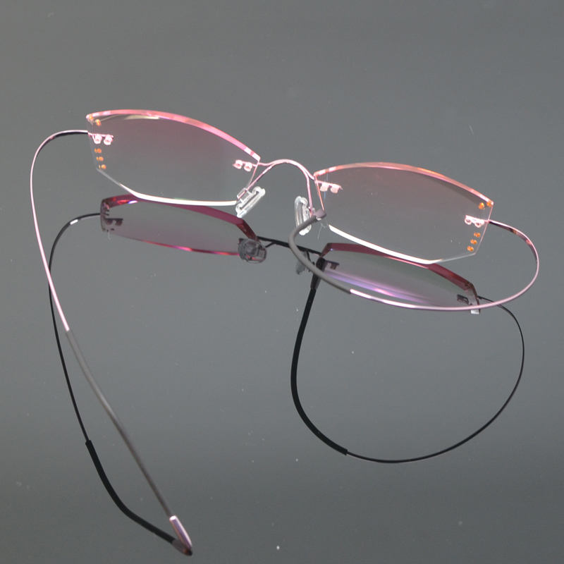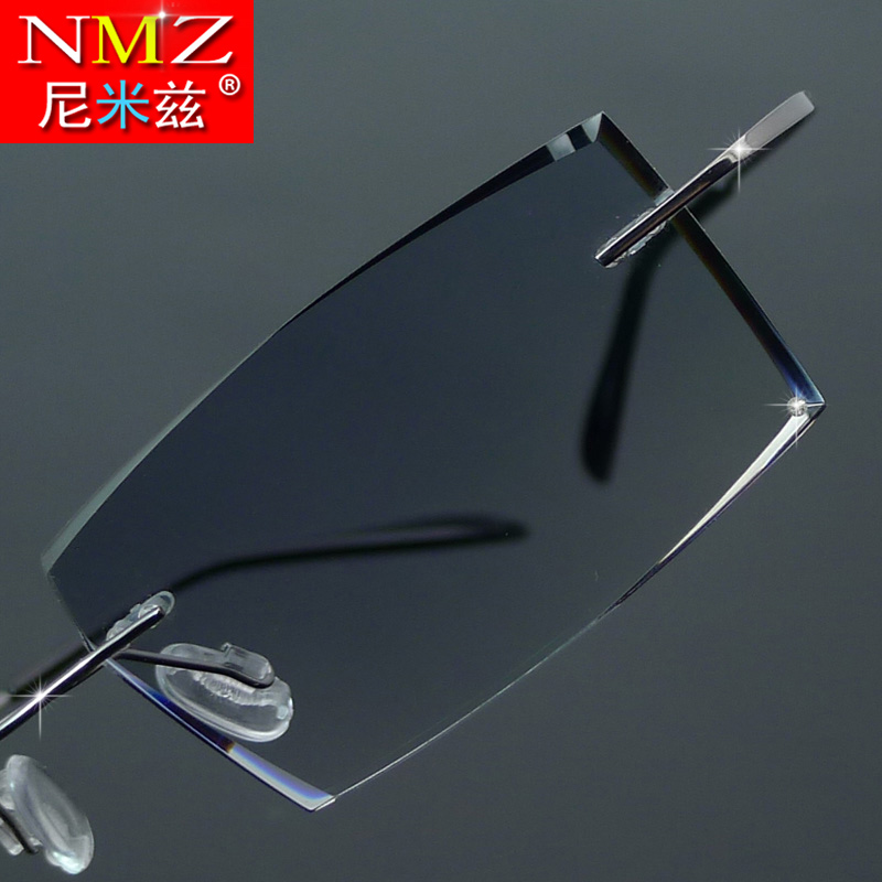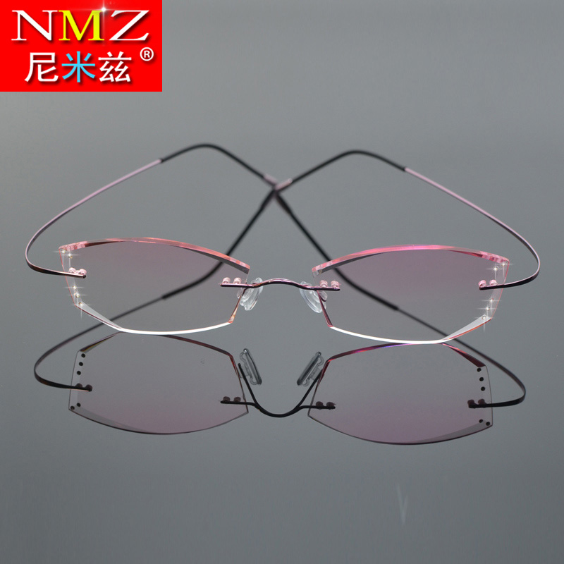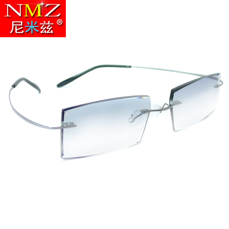 Frameless edge cutting glasses myopia titanium eye frame large face male memory frame ultra - light film eye - protective glasses
