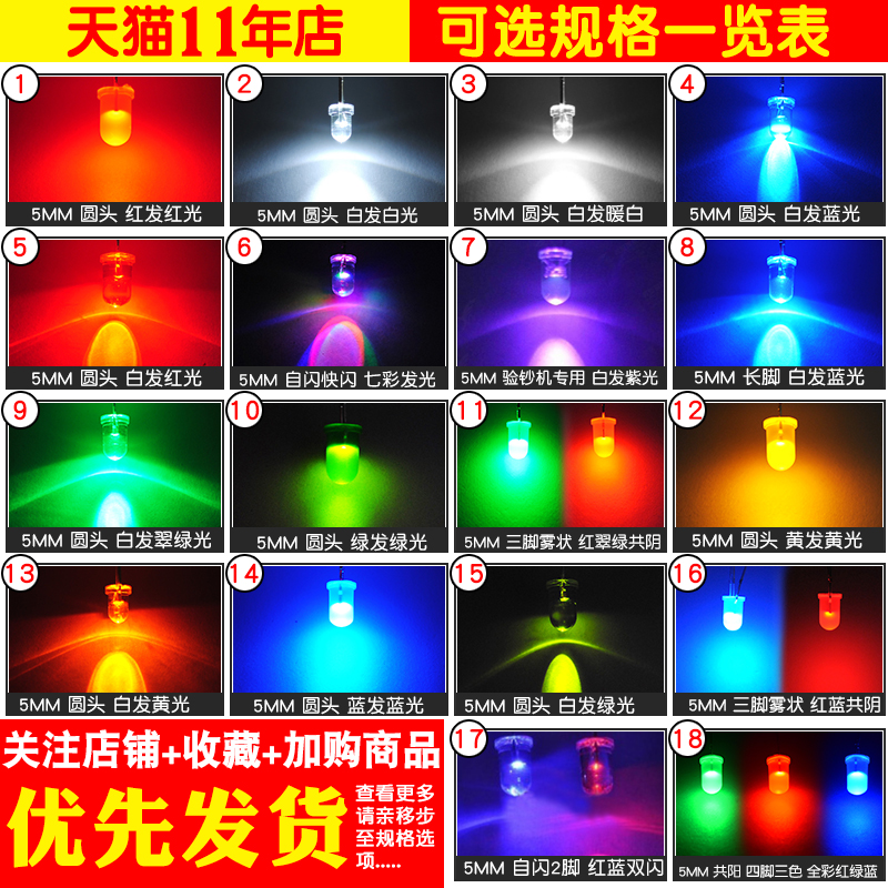 5mm round head red and red light (50) 5mm round head white hair white light (50) 5mm round head white hair warm white light (50) 5mm round head White