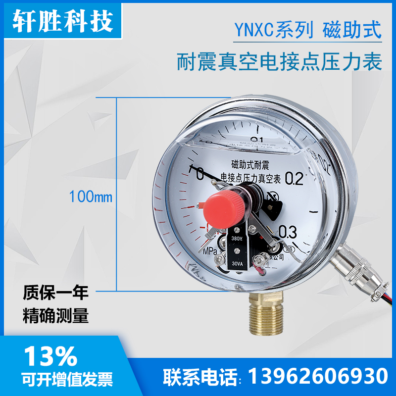 YNXC-100-0 1-0 3MPa positive and negative pressure magnetic-assisted shock-resistant electric contact pressure vacuum gauge