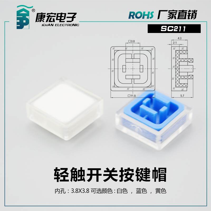 Manufacturers direct selling SC211 button cap inner diameter 3 8*3 8 with 12*12 square heads light touch switch Blue and White