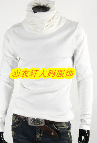 Spring new plus fat plus size men's casual cotton high collar long-sleeved T-shirt men's bottoming shirt