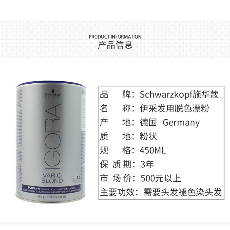 German imported black head Schwarzkoy bleach powder 450g dyed light dye hair bleaching fading fading