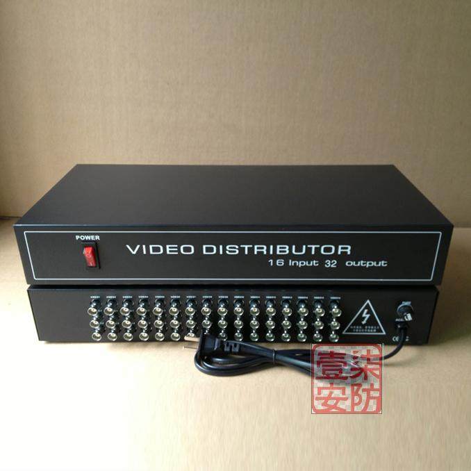 Rack-mounted 16-in 32-out video distributor monitoring distributor BNC1 points 2 gain amplification 16 into 32