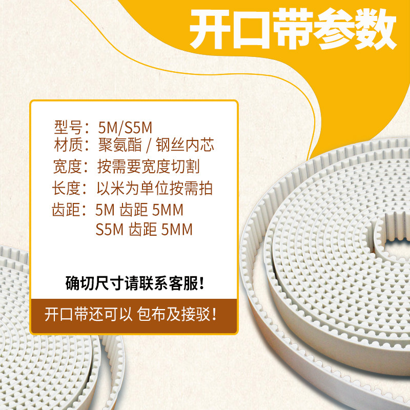 Polyurethane steel wire open timing belt 5M S5M 3M S3M Embroidery machine accessories belt Open belt Steel wire belt
