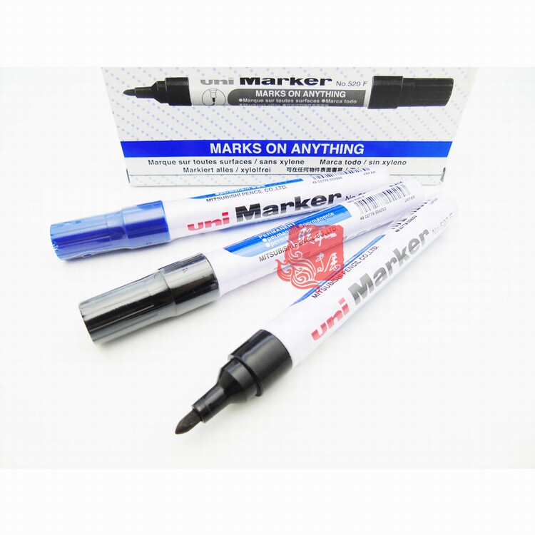 Japan's Mitsubishi 520 F oily MARKER box head pen metal plastic surface aluminum tube marker pen black blue