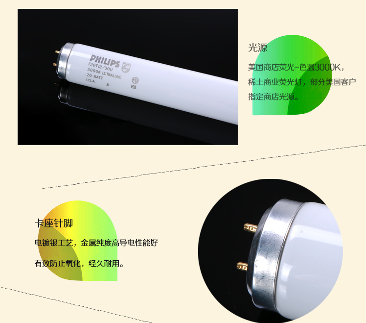Original dress Philips U30 lamp tube F20T12 30U 30U temperature 3000K standard light source for color light box lighting tube 60CM
