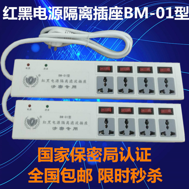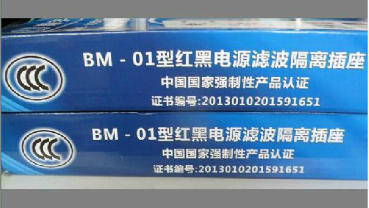 Red and black BM-01 filtering isolated socket patch cord plug-in power filter with national seal authentication