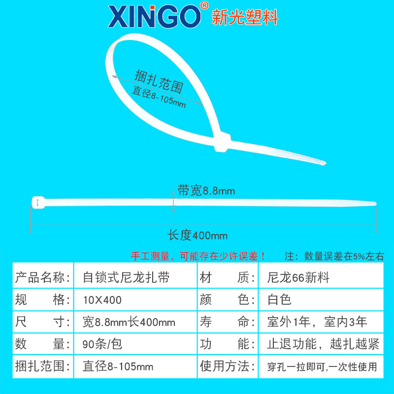 New light 10 * 400mm national standard self-lock style nylon tie white plastic strapping with fixed beam wire rationalliga strap