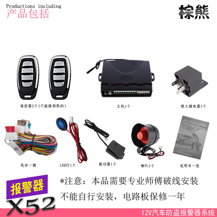 12V General Motors Alarm Ex-one-way Burglar Alarm 2 Remote Control Brown Bear X52 Wagon Drop Lock Flashing Lights LED