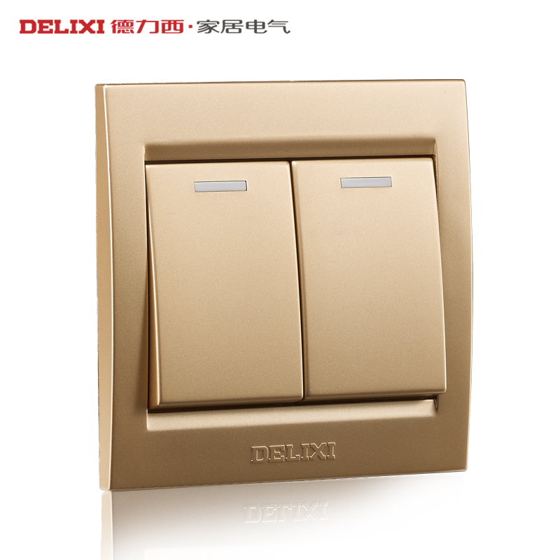 Deri West Switch Socket Panel Two two open double cut fluorescent switch panel CD810 Champagne gold