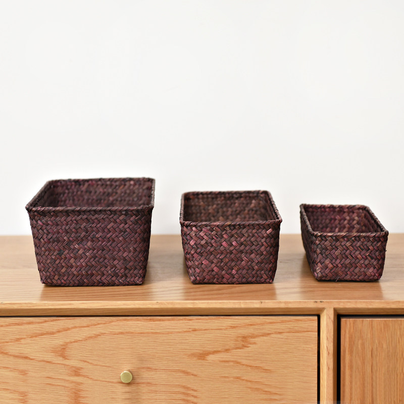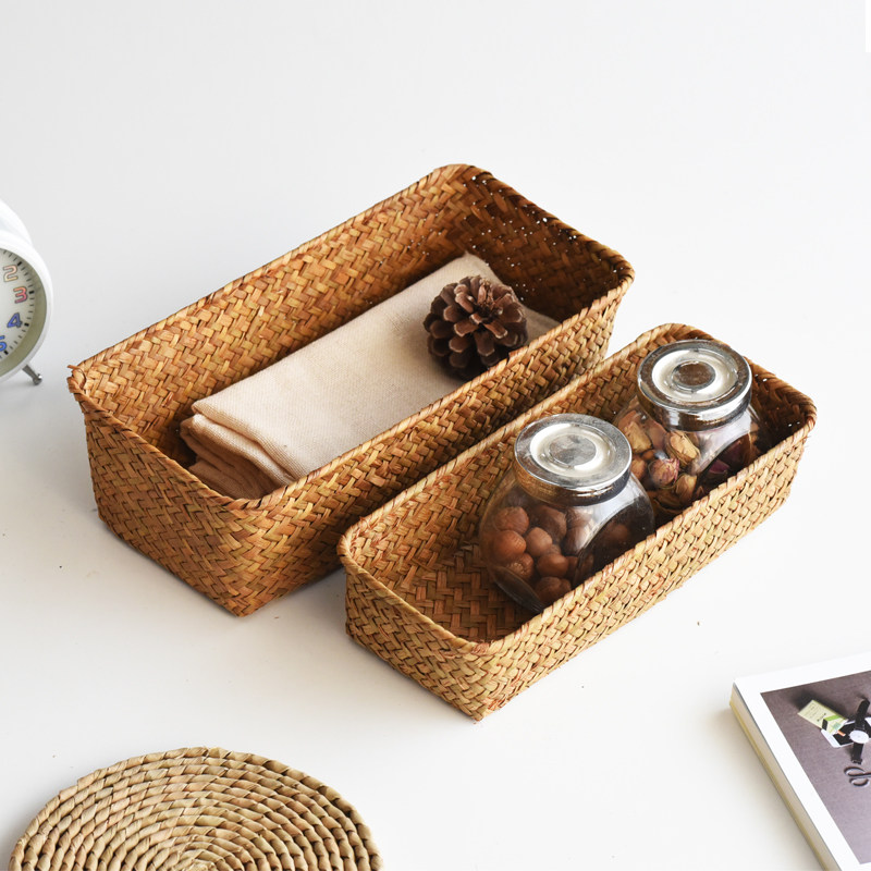 Craftsmanship Bamboo Basket Seagrass Storage Box Storage Basket Japanese Storage Basket Rattan Storage Basket Desktop Basket