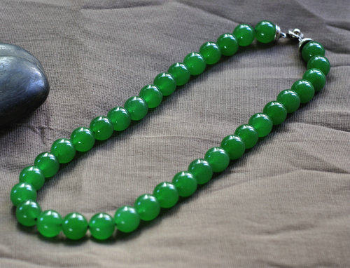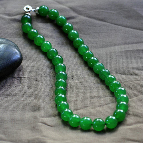 The fine Malay jade necklace is bright and noble