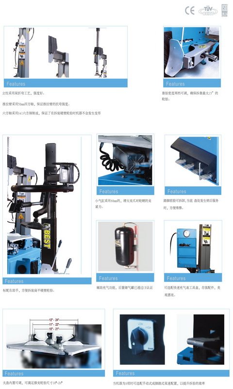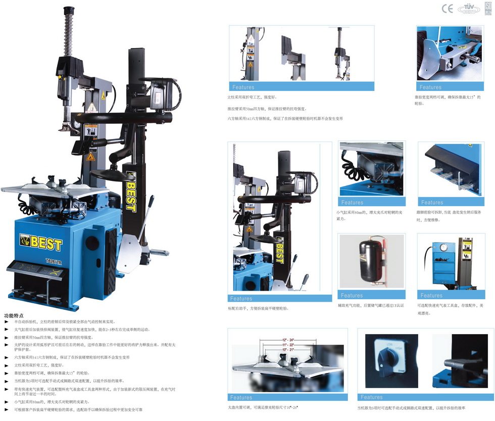 Shanghai Baishituo export tire CHANGER with auxiliary arm burst charge TYRE CHANGER T626ITR