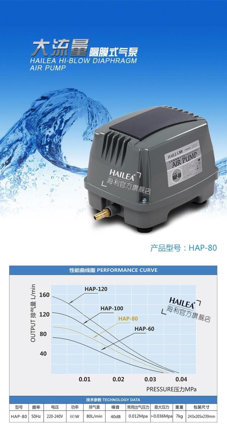 Haili high flow diaphragm air pump HAP60 80 100 120 150 200 Koi fish pond oxygen pump