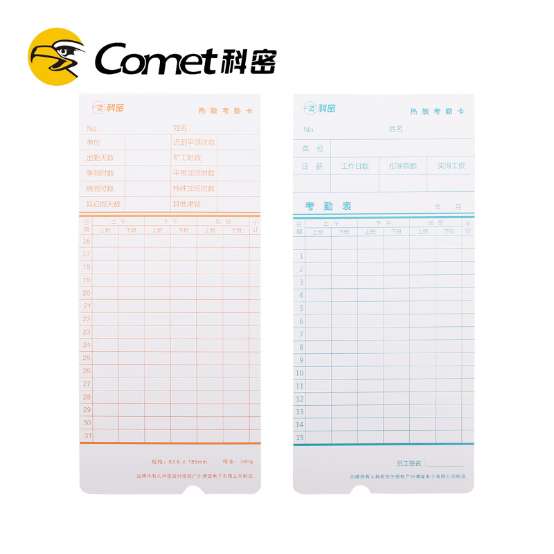 Komi thermal attendance card attendance machine Thermal paper card punch card machine paper card 50 sheets a pack of thermal machine use