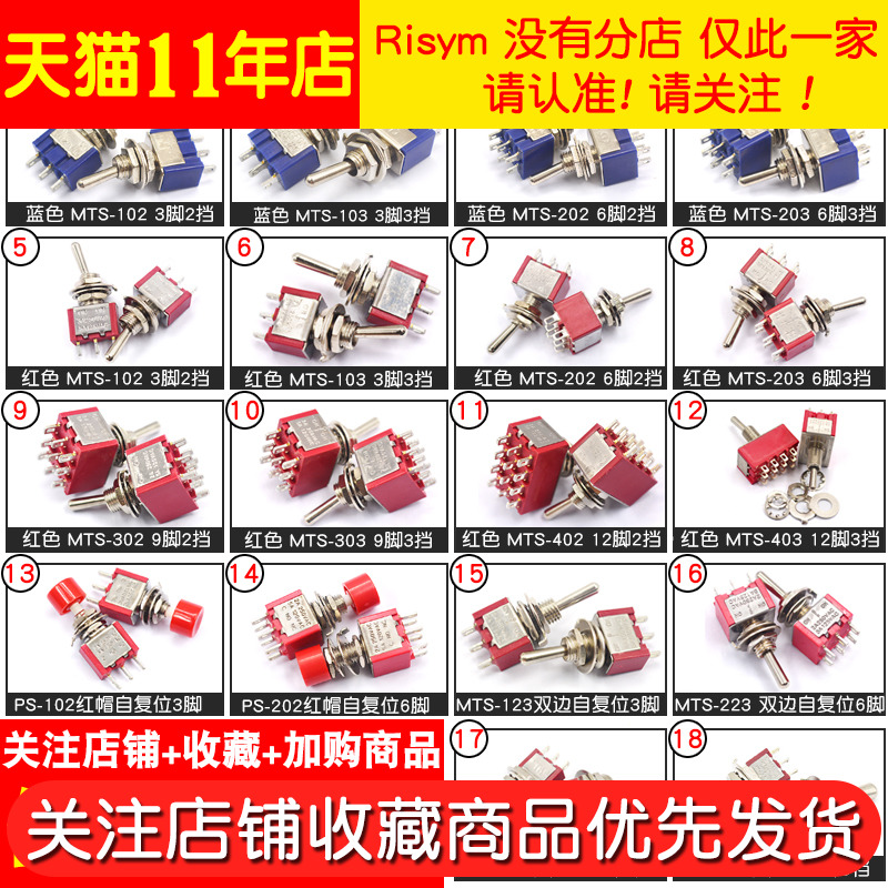 Button switch Twist shake head rocker switch MTS-102 103 202 two and three gears 2 3 Toggle No self-reset