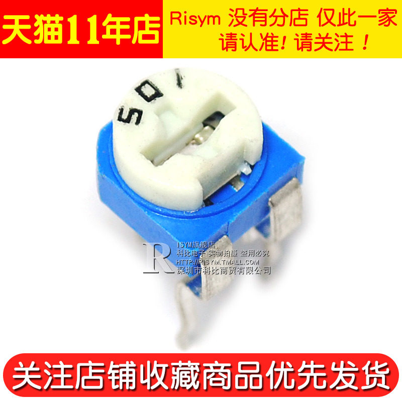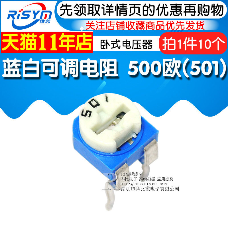Risym high quality horizontal blue and white adjustable resistance 500 ohms (501) horizontal potentiometer (10)