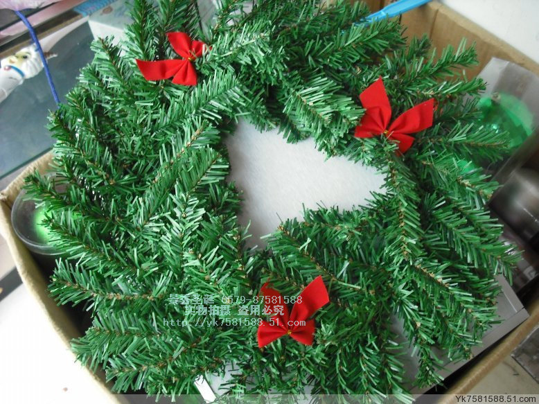 Green plastic leaves 40 cm diameter of Christmas decorated with blossom embryo of blossom 40cm Christmas wreath