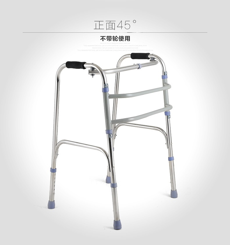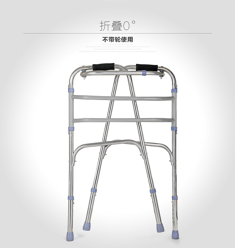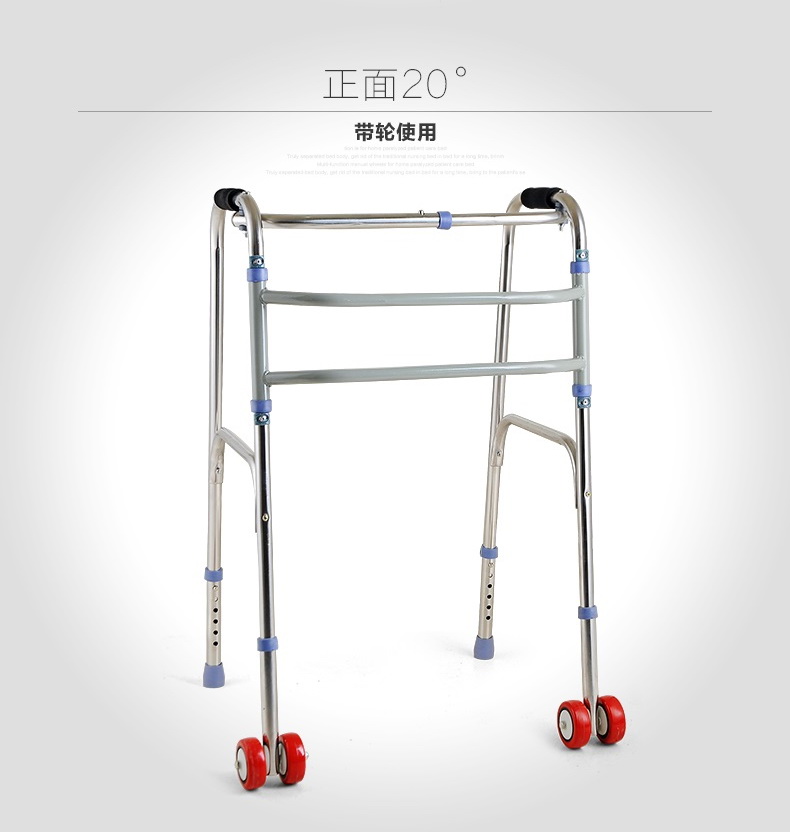 Elderly walker 4 feet with wheel elderly crutch Foldable double bar stainless steel walker Four corner cane