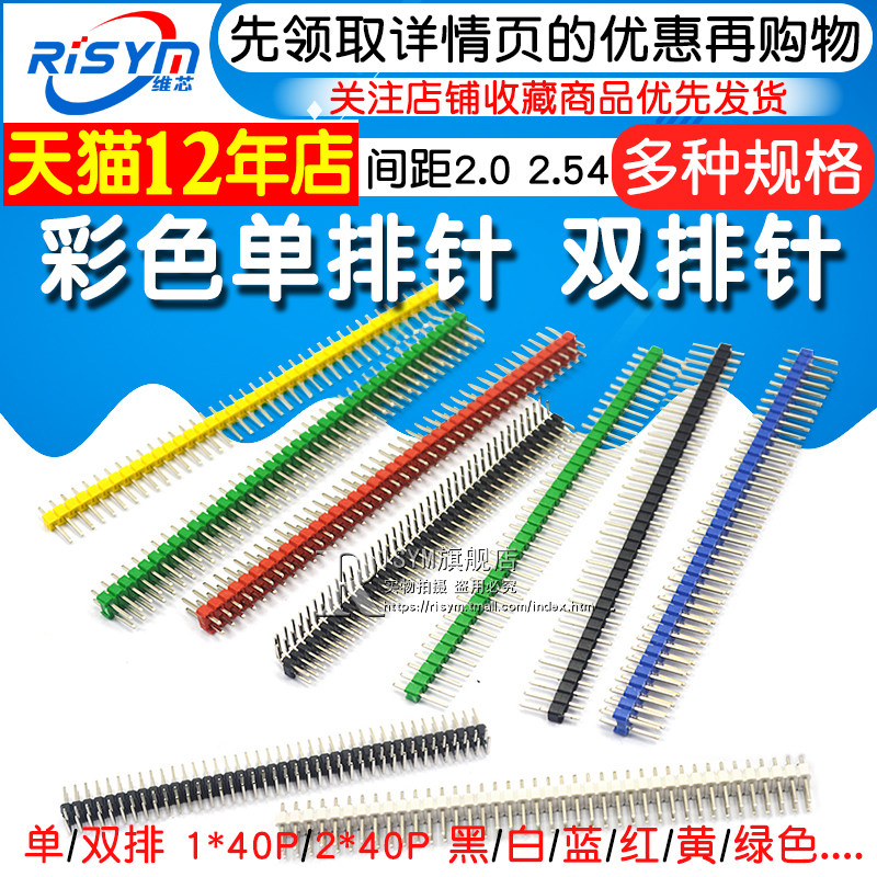 Single row pin 1*40 Double platoon pin 2 * 40 round 2 54mm pitch 2 0 black and white blue red green yellow single double platoon pin