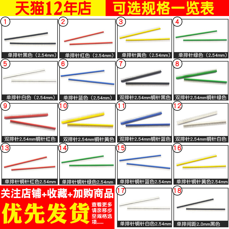 Black (2 54mm) (20 roots) red (2 54mm) (10 roots) Yellow (2 54mm) (10 roots) Green (2 54mm) (1