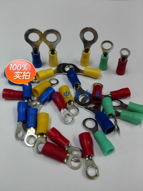 RV2-5 cold pressed wiring terminal round pre-insulated end head with insulating sheath copper wire ear 1 bag 1000 only