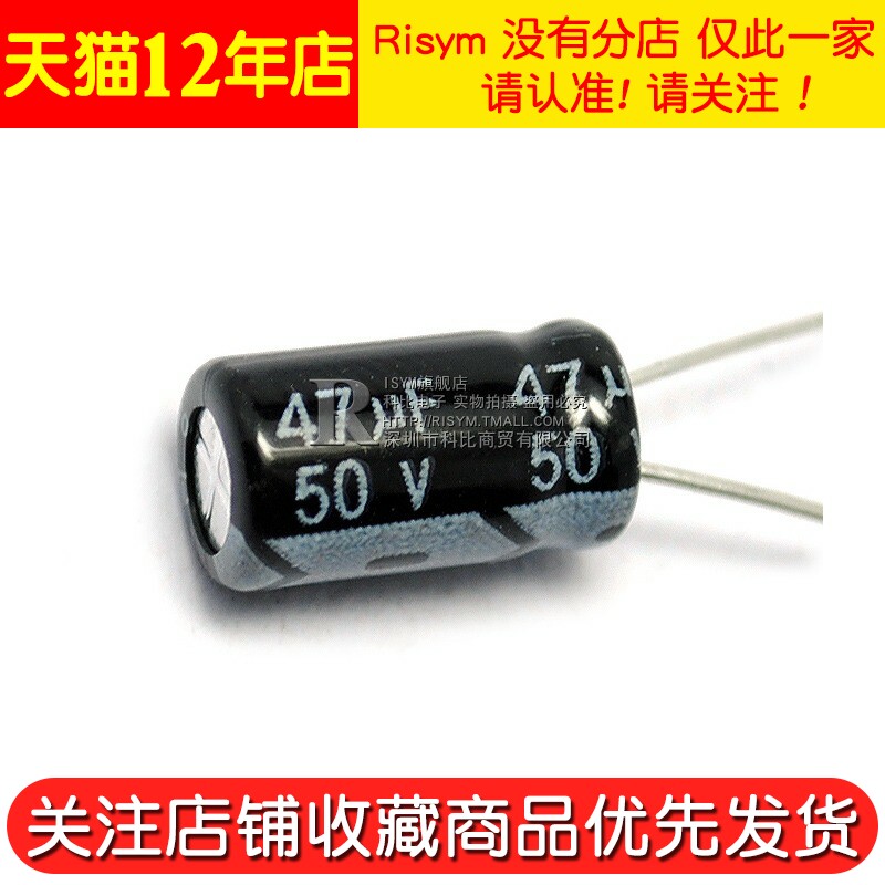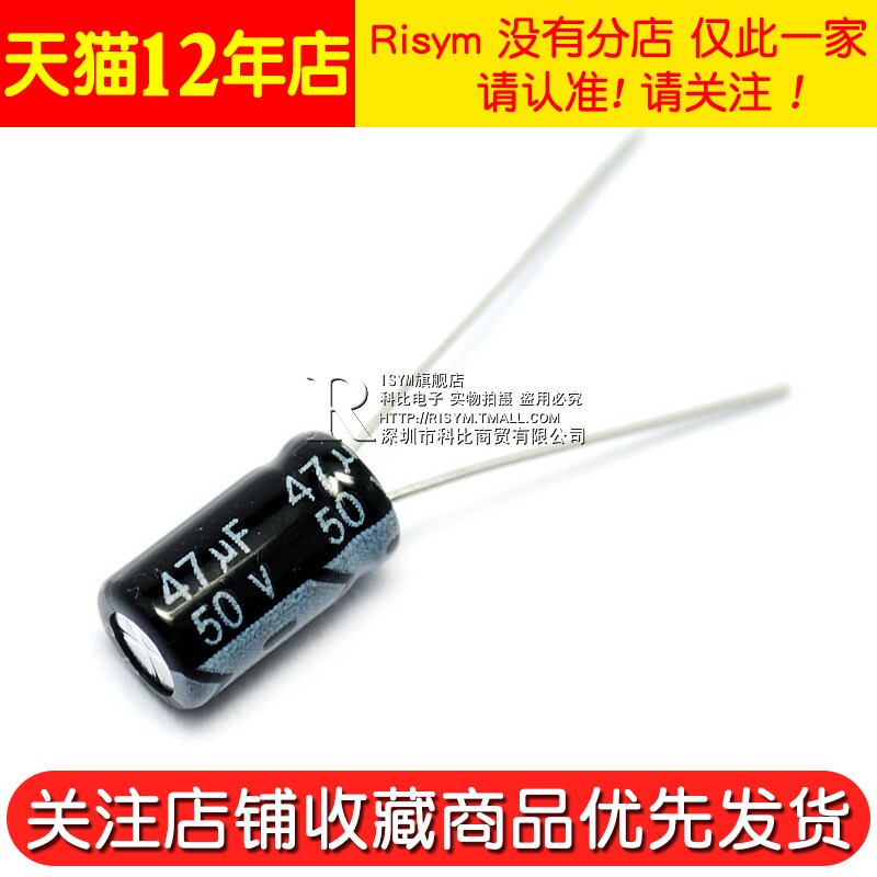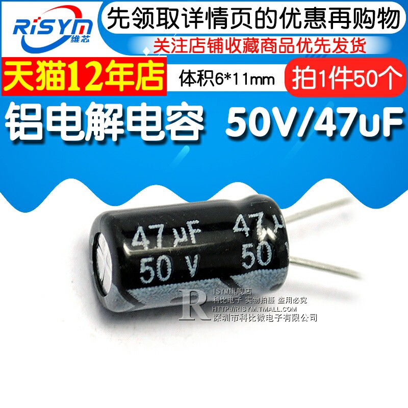 Risym electrolytic capacitor 50V 47uF volume 6*11mm straight plug High quality aluminum electrolytic capacitor 50
