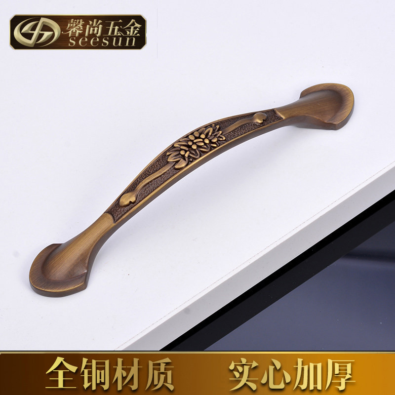 Pure copper all-copper handle European style overall closet door drawer imitation retro furniture American Wardrobe Cabinet Kitchen Door Pull Handle