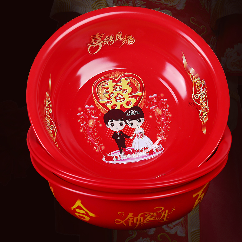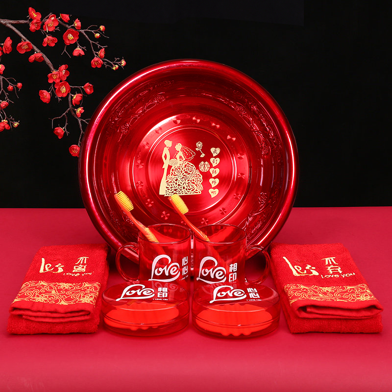 Wedding dowry wash set Stainless steel happy basin Woman dowry red happy word wash basin Wedding supplies Daquan