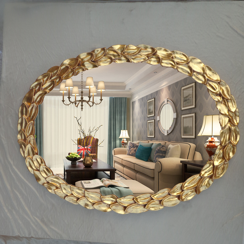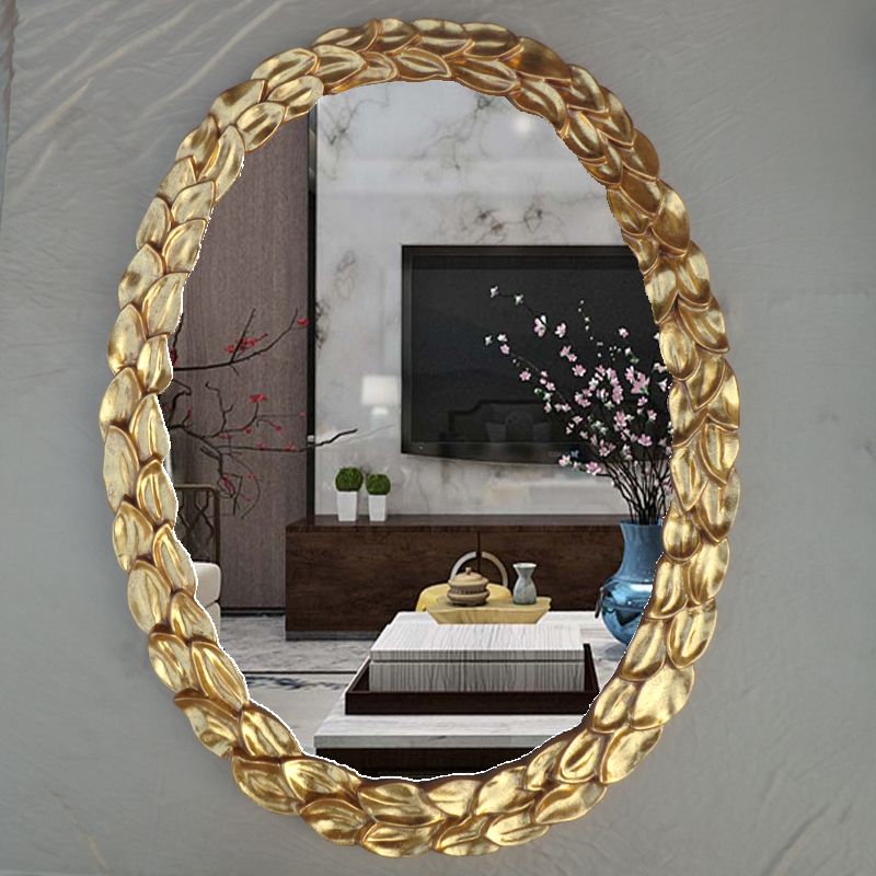 Retro gold European-style bathroom mirror oval bathroom mirror with dressing mirror dresser Decorative Mirror Cosmetic Mirror Cosmetic Mirror-Taobao