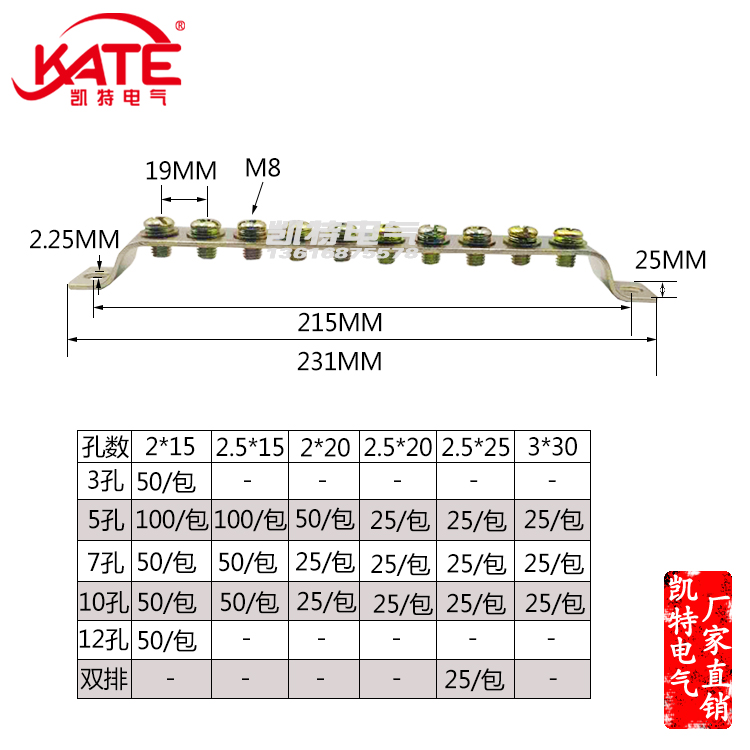 10 hole ground rank 2 5*25 total length 231 brass zero ground discharge wiring Distribution box conversion copper row KT054