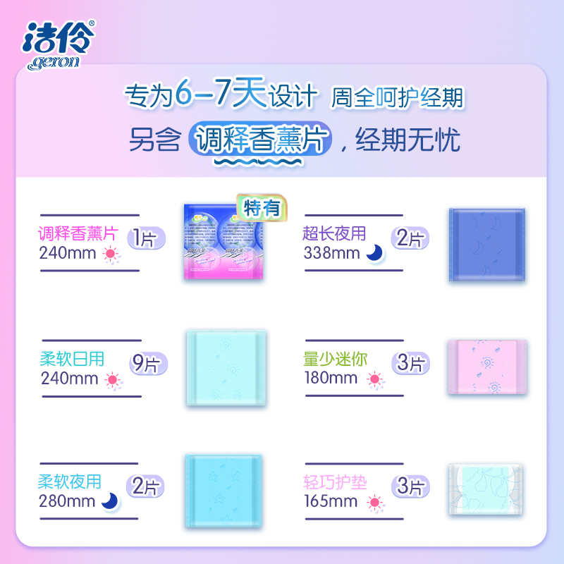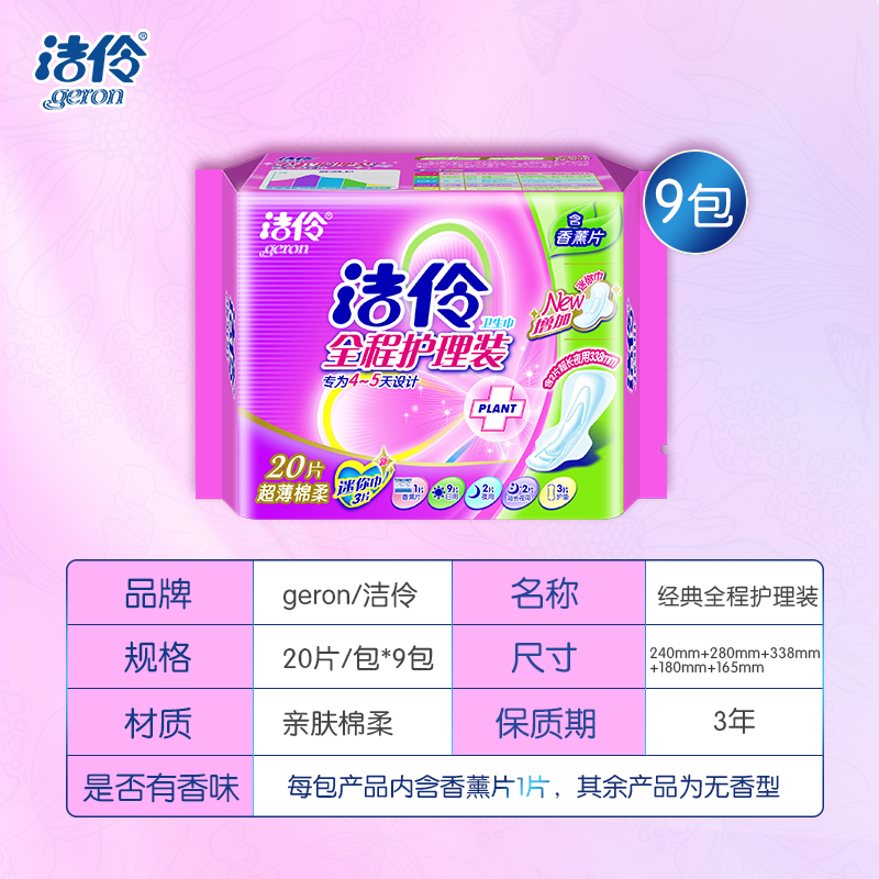 Jieling sanitary napkin women's whole box soft aromatherapy full care day and night combination pack 9 packs of wholesale aunt towel