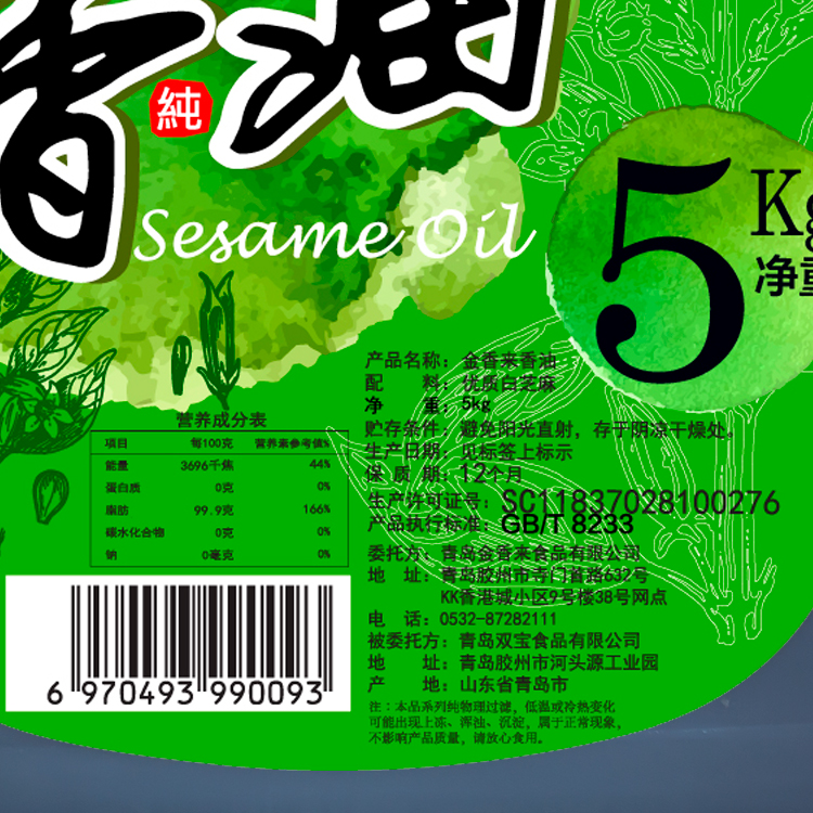 Kim Heung Lai Sesame Oil Sesame Oil 5kg Vat Korean Cuisine Yakiniku Sushi Shop Commercial (093)