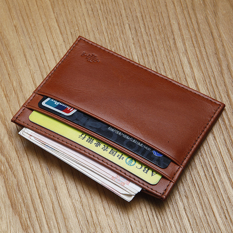 Blue leather with men's small card bag cutting sleeve ultra-thin small wallet real cow leather zero wallet Niu leather bank card clamping document bag