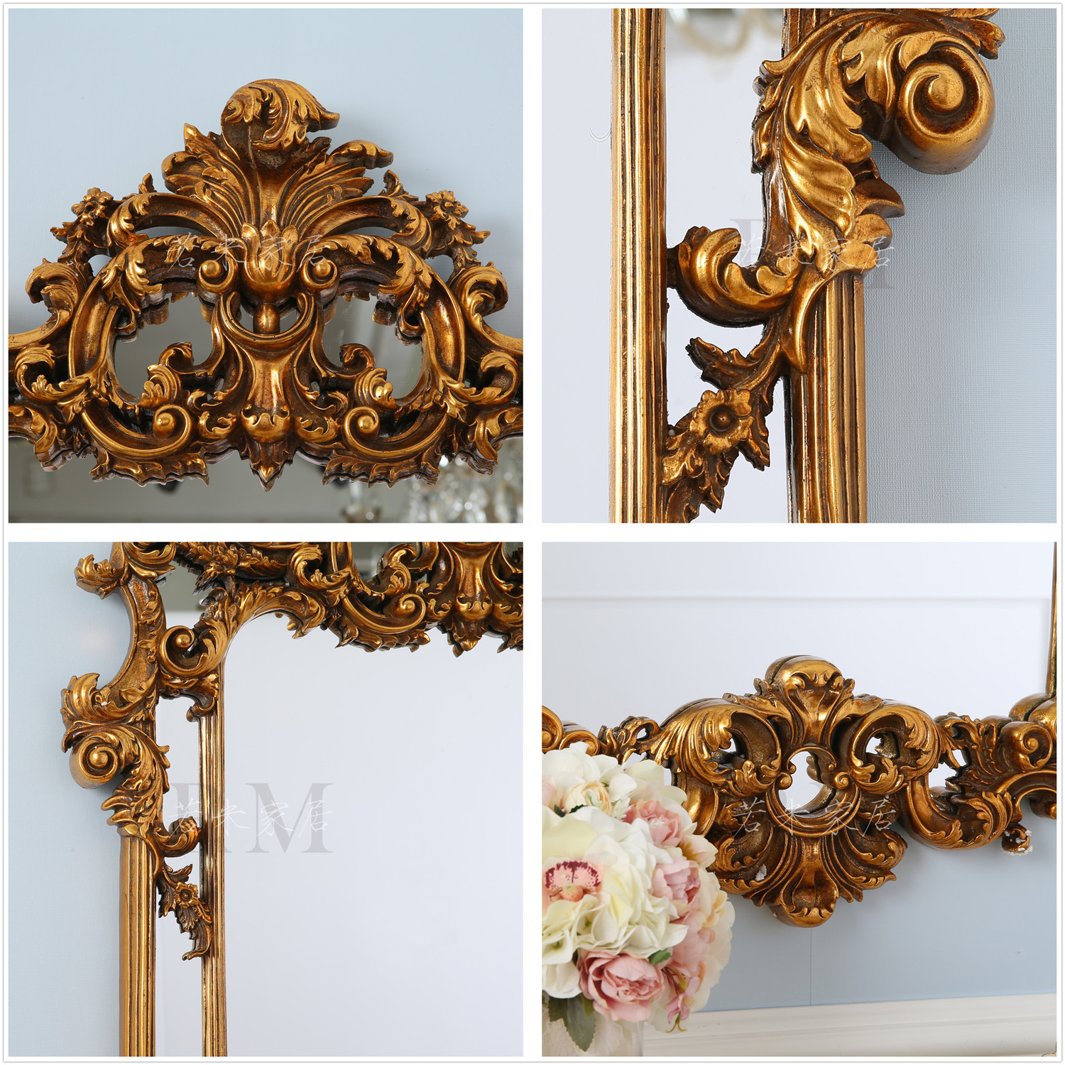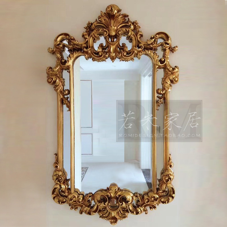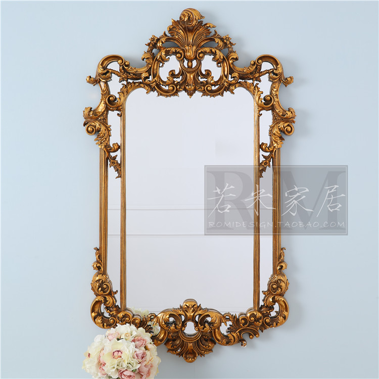 124x75 European and American French gold foil engraved mantelpiece mirror luxury bathroom mirror entrance hanging mirror decorative mirror Baroque