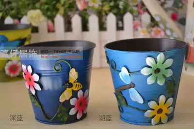 Pastoral home wrought iron small flower bucket iron flower pot flower pot flower insert desktop decoration storage iron bucket