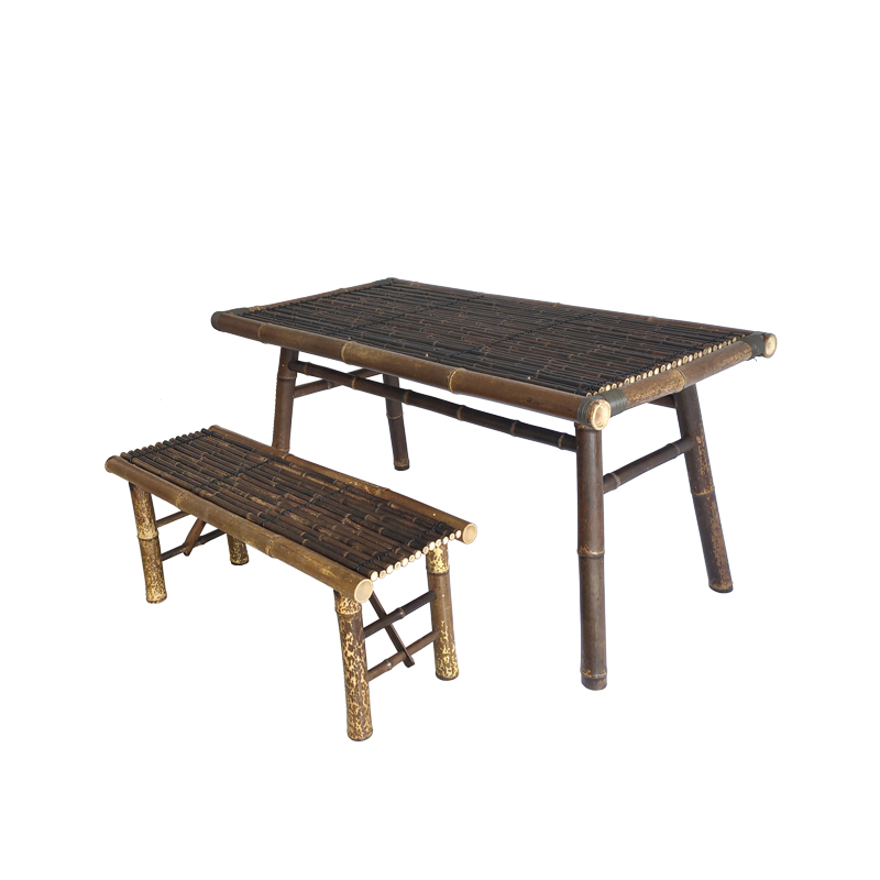 Purple bamboo square table one table and two stools (1 meter) one meter bench 60cm fixed short stool 140cm fixed long table