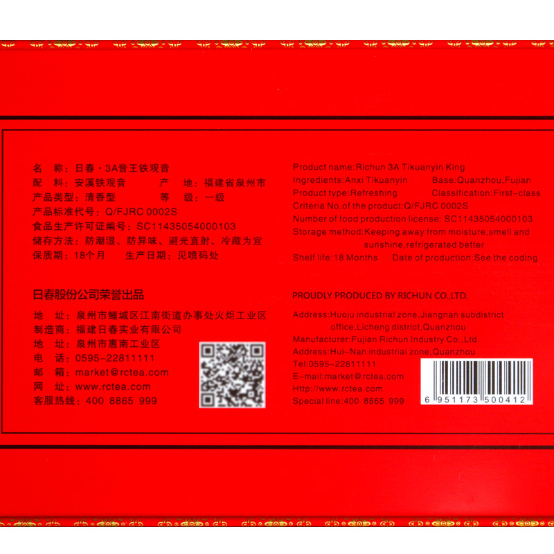 Richun Tea Anxi Qingxiang Tieguanyin (3A Yinwang 150g) gift box Oolong Tea
