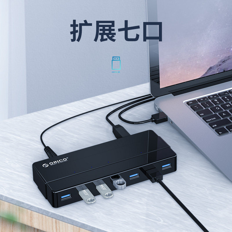 Orico Auerico usb3 0 extension wire live source external connection 12v active 7 ports high speed usp expansion multi-interface charge augers sub-connector computer hub with power supply hub