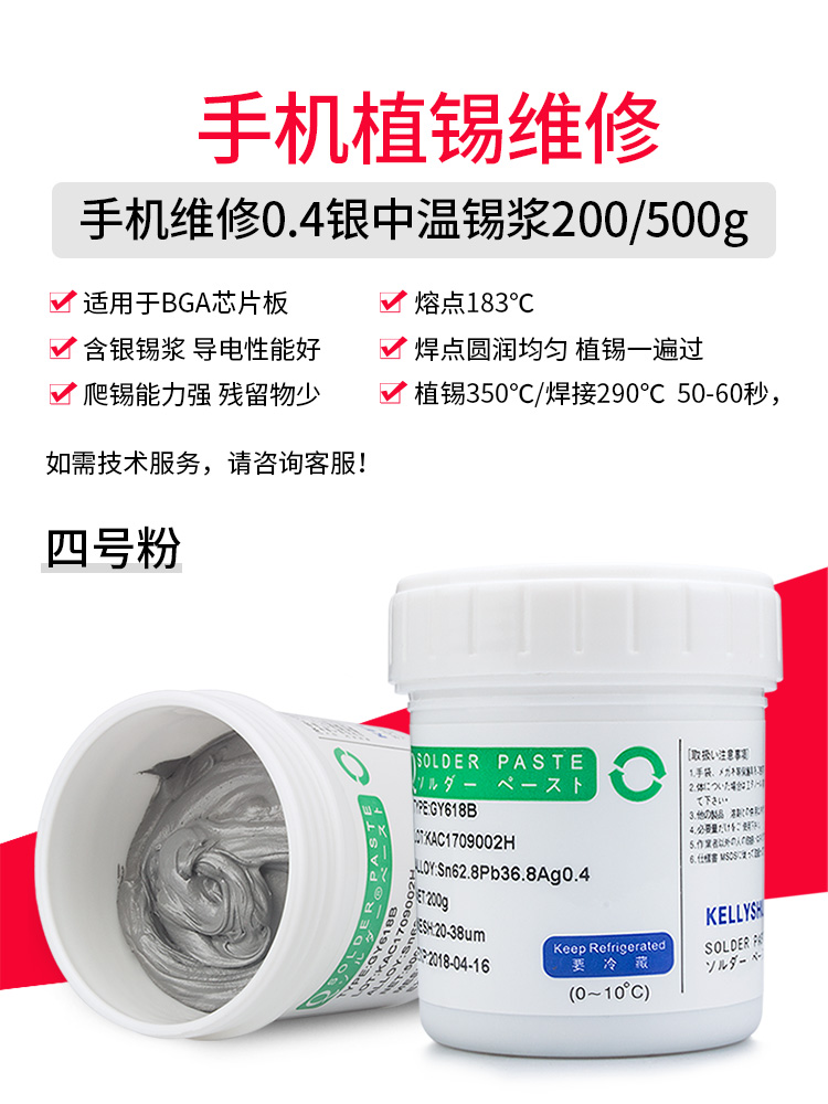 Mobile phone repair 0 4 silver medium temperature solder paste No. 4 powder total weight 500g