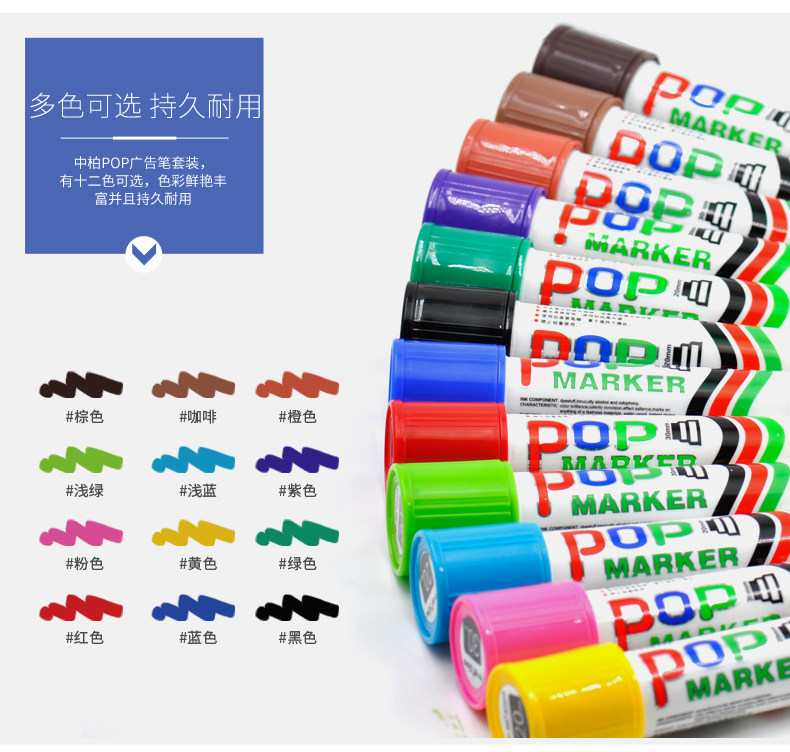 Medium Platinum Hand Painted POP Mark Pen 20mm Poster Pen Fine Art Pen 12 Color Pop Pen Advertising Pen Waterproof Speed Dry-Taobao