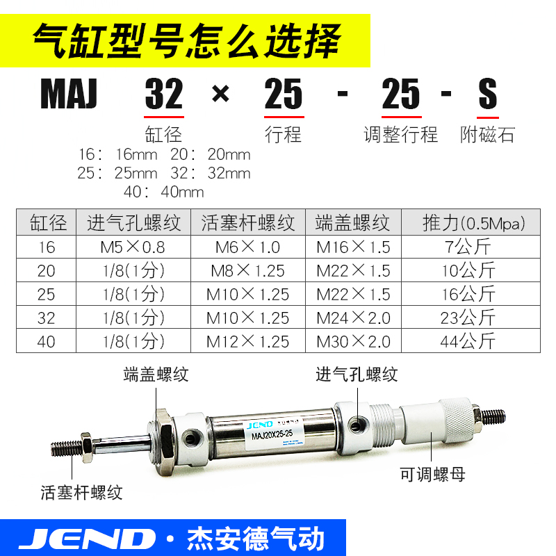Stainless steel stroke adjustable mini cylinder MAJ16 20 25 32 32 40 * X25X50X75X100-25-50S-Taobao